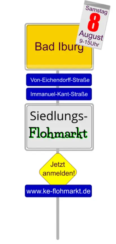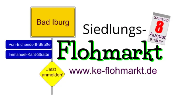 Merkt Euch den Termin: 8.8.2026 Der Flohmarkt beginnt um 9 Uhr.Weitere Informationen für Besucher, Anbieter und Anwohner demnächst hier!Ihr möchtet Euch schon einmal für einen Stand vormerken? Dann schreibt uns doch bitte eine Nachricht:info@ke-flohmarkt.de